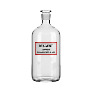 High-quality borosilicate glass reagent bottle suitable for storage and dispensing of chemicals and lab solutions.